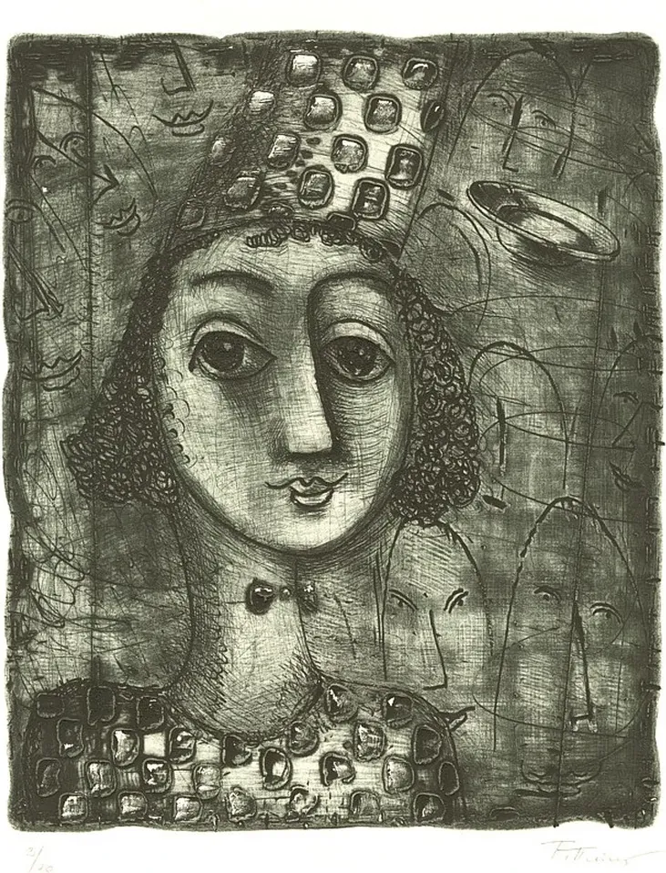 Première, a stunning etching by Taras Plishch, captivates viewers with its deep emotional resonance and unique blending of abstract and figurative elements.