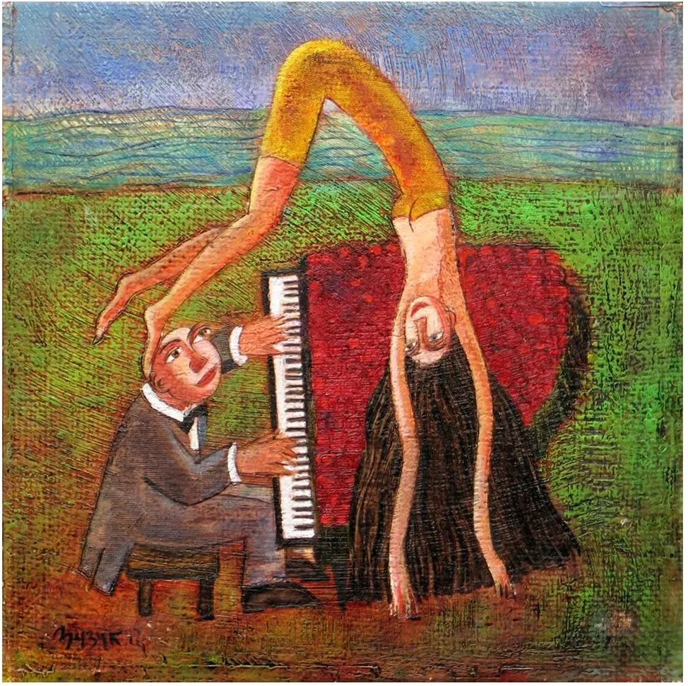 This naïve art composition radiates romance, whimsy, and dreamlike elegance, making it an ideal addition to a living room, music room, lounge, or art gallery. "Romantic Sonata" invites viewers into a world where music transcends the senses and transforms into movement.