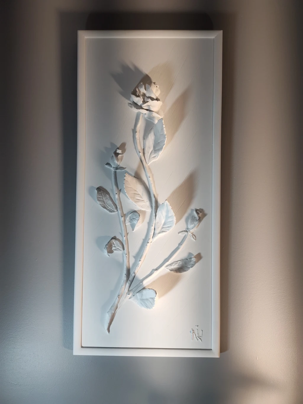 Rose – Serene Floral Bas-Relief in Plaster & Metal, 2023
