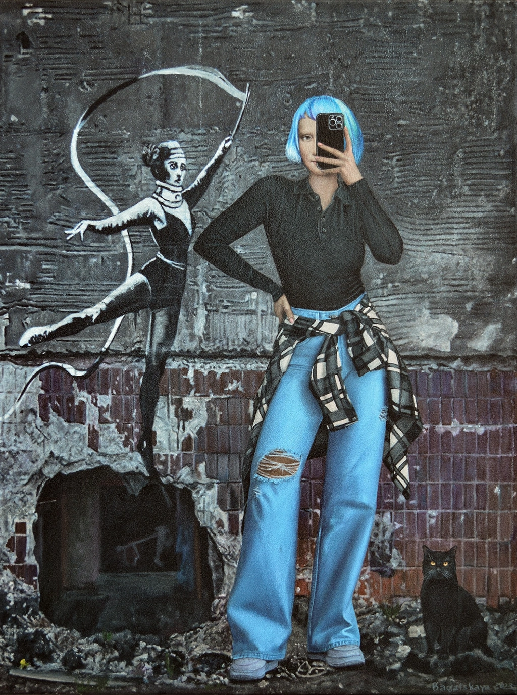 Discover Selfie with Banksy Art by Nataliya Bagatskaya: A Realistic Urban Portrait