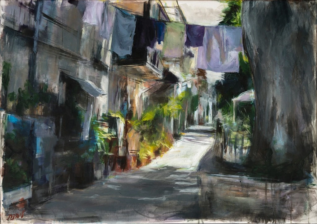 Livnat Bashari Shuli, known for her ability to bridge figurative and impressionist styles, creates a deeply evocative scene that resonates with both personal and collective memory. Her mastery of oil painting techniques, influenced by her studies in Jerusalem and mentorship under Aram Gershoni, is evident in the fluidity and depth of her work.