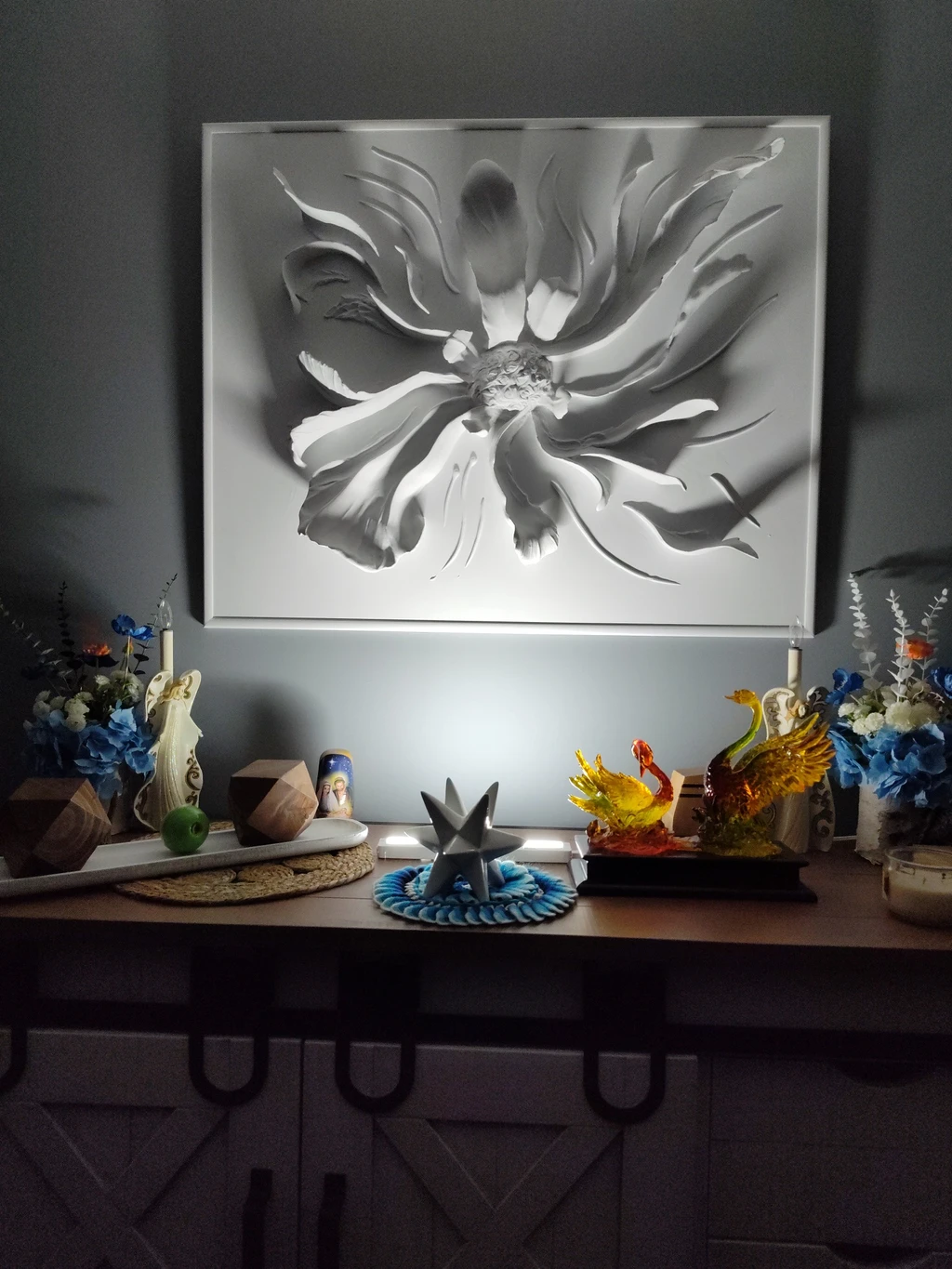 Perfect for contemporary settings, "Star Named Sun" fits seamlessly into modern living spaces, offices, or art collections. Its futuristic and dramatic aura makes it a captivating focal point, bringing an element of celestial wonder into any environment.