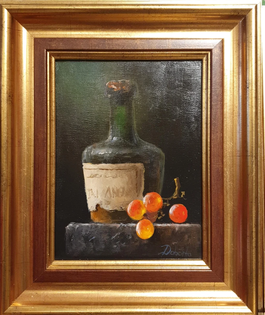 An ode to vintage elegance, Still Life 3 by Dobarta Virgil is a beautifully detailed oil painting capturing the essence of fine wine and tradition.
