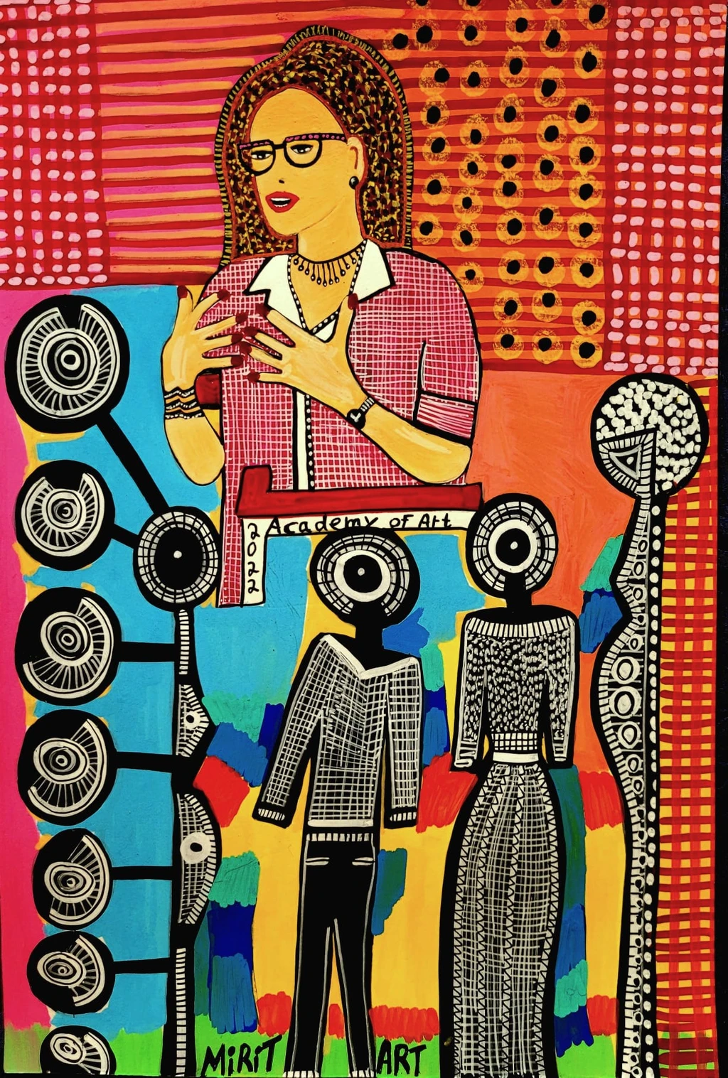 Mirit Ben Nun, an acclaimed Israeli artist, is celebrated for her bold use of colors, intricate patterns, and storytelling approach. Stimulation is a testament to her ability to capture moments of intellectual and emotional connection, making it an essential addition for those who appreciate art that speaks to the power of knowledge and communication.