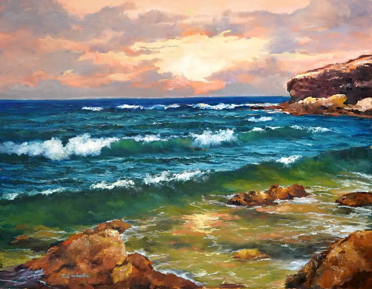 This painting by Olga Egorov masterfully conveys the untamed spirit of the sea juxtaposed with the tranquil beauty of a sunlit sky. The waves are captured in various stages of motion, suggesting the constant ebb and flow of the tide. The warmth of the sunlight contrasts with the cool blues and greens of the water, creating a captivating interplay of color. Egorov’s use of texture gives life and movement to the sea, making "Sun and Sea" an excellent choice for anyone who feels connected to the ocean and its ever-changing moods.