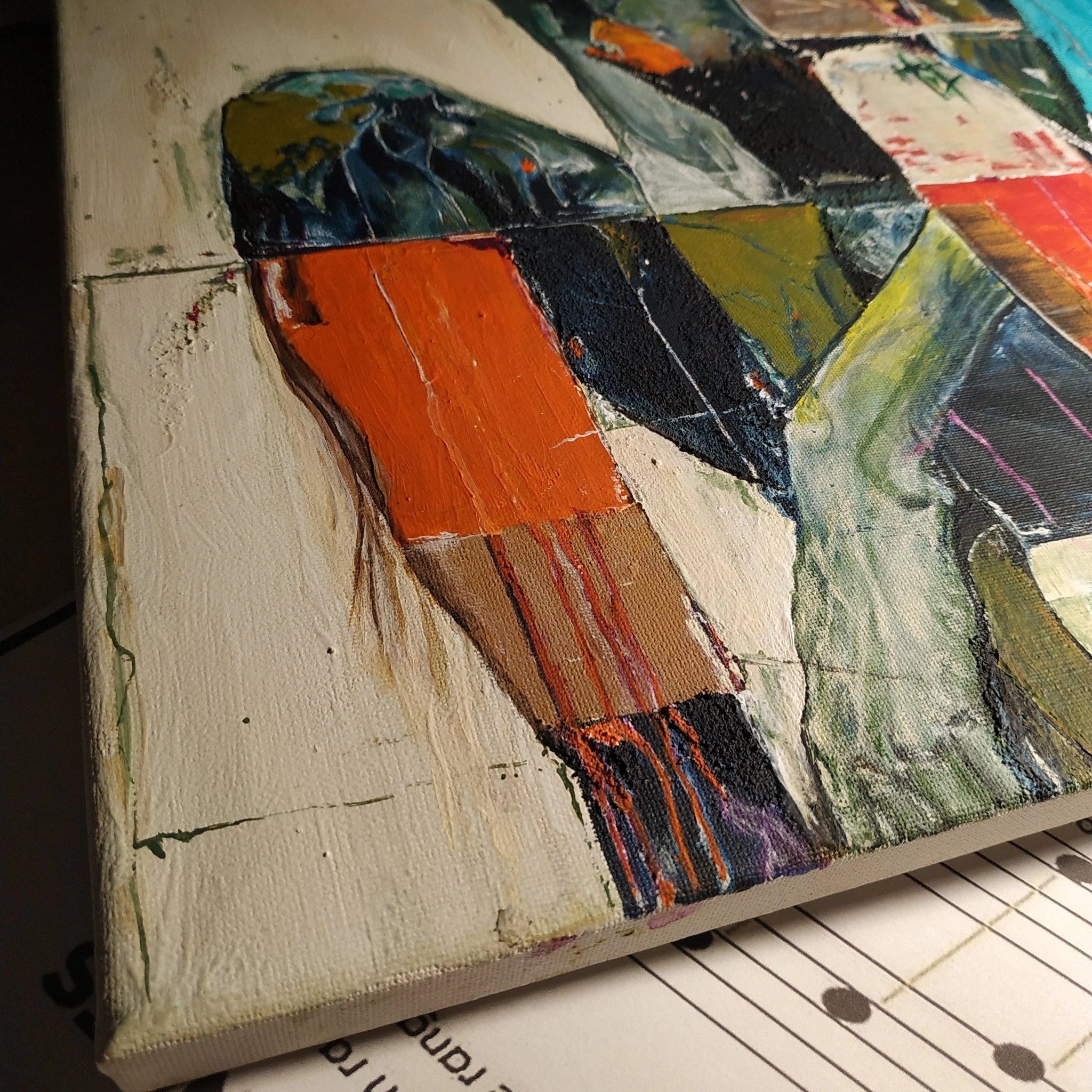 The Colors of February is a muted and introspective abstract acrylic portrait exploring solitude and stillness through textured form and color.
