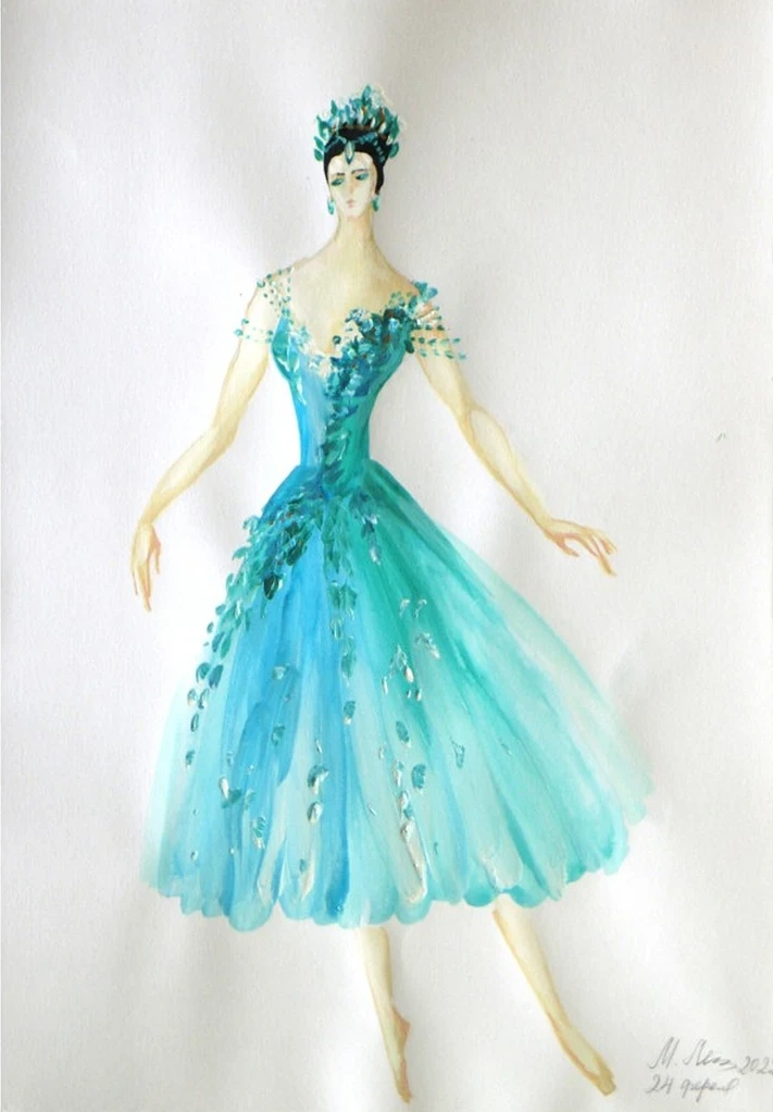 A Breathtaking Ballet Sketch by Maria Levitska – The Emerald Costume