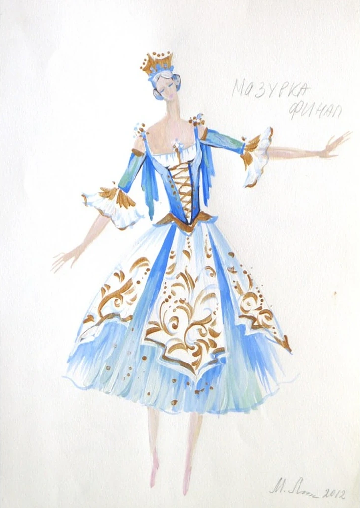 The Mazurka Costume Sketch by Maria Levitska – A Ballet Fantasy in Mixed Media