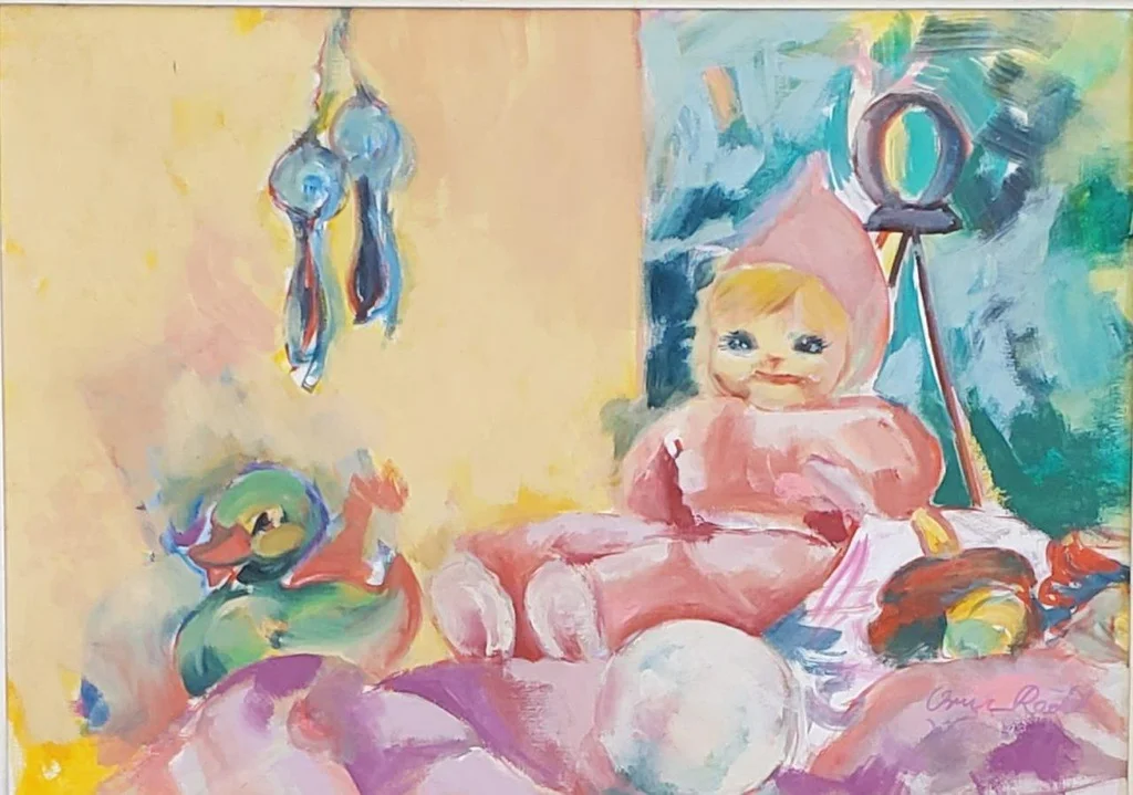 The Pink Doll – A Dreamy and Sentimental Impressionist Painting by Orna Rachel Weiner
