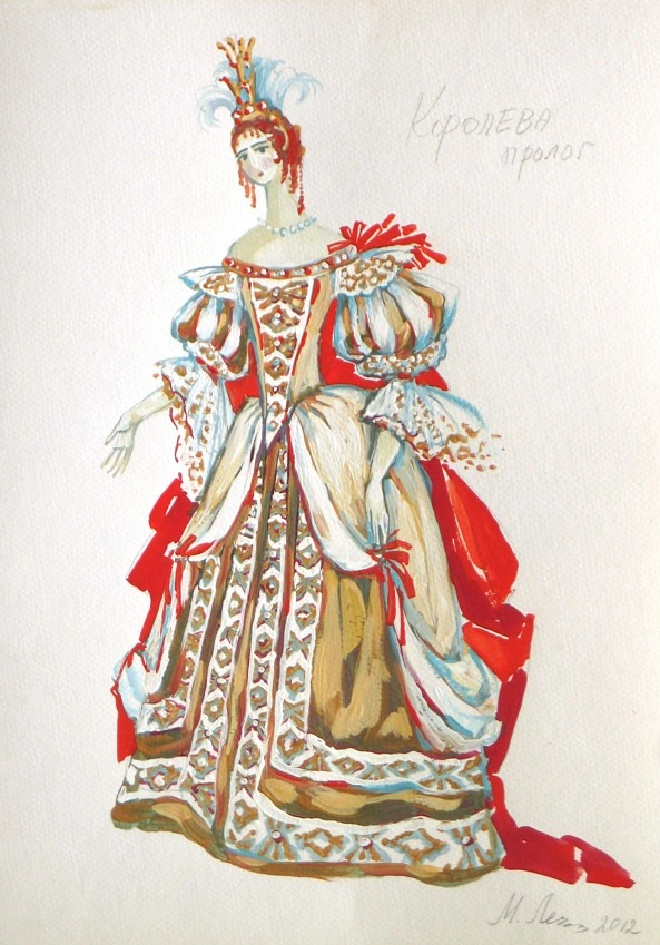 Regal Elegance in Theatrical Art – The Queen Costume Sketch by Maria Levitska