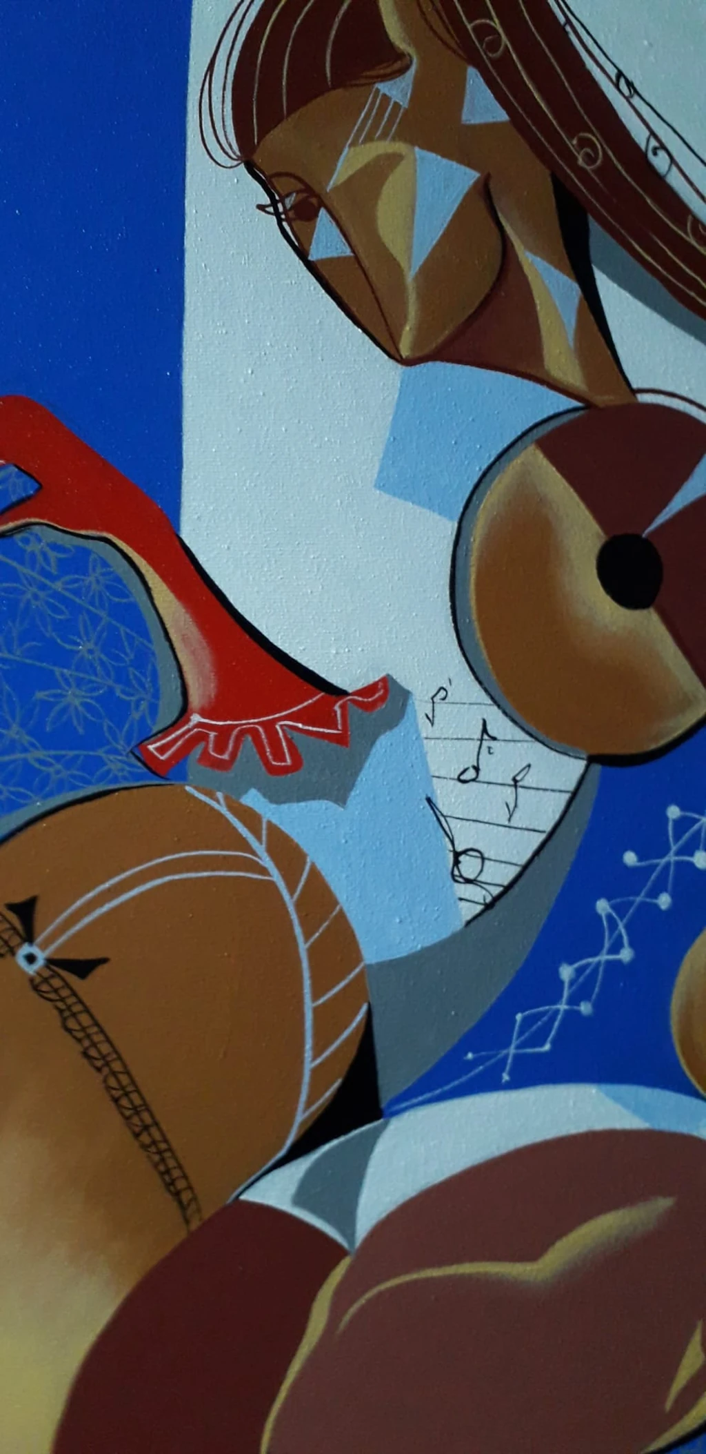The painting celebrates the elegance and confidence of women, depicted with fluid lines and geometric shapes that evoke a sense of dance and movement. The minimalist yet powerful background contrasts with the intricate detailing of the figure, amplifying its artistic depth. Perfect for living rooms, studios, or gallery spaces, this piece exudes grace and modern sophistication.