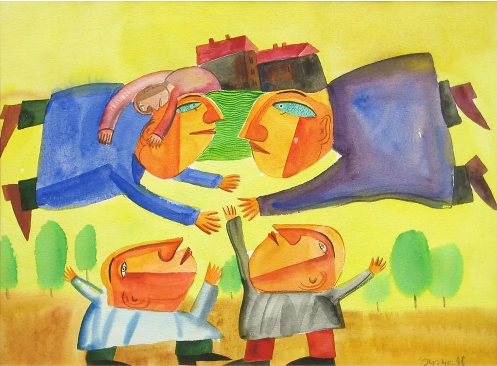 Roman Zuzuk is a Ukrainian artist whose colorful, whimsical works blend childhood memories with subtle social commentary and modern fables.MORE ARTWORKS BY THIS ARTIST