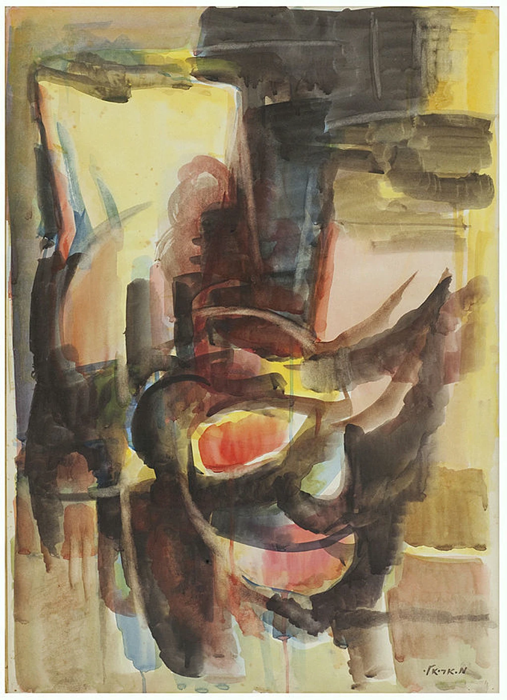 Untitled by Mordechai Arieli is a striking abstract expressionist work that captivates with its dynamic movement and layered textures.