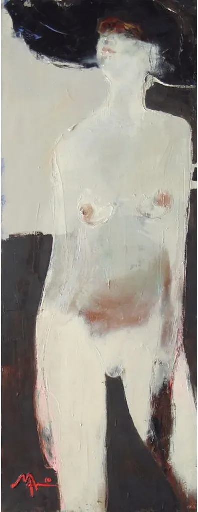 Measuring 130 x 50 cm and crafted using oil on canvas, this artwork stands as a testament to the artist's expressive approach and symbolic storytelling.