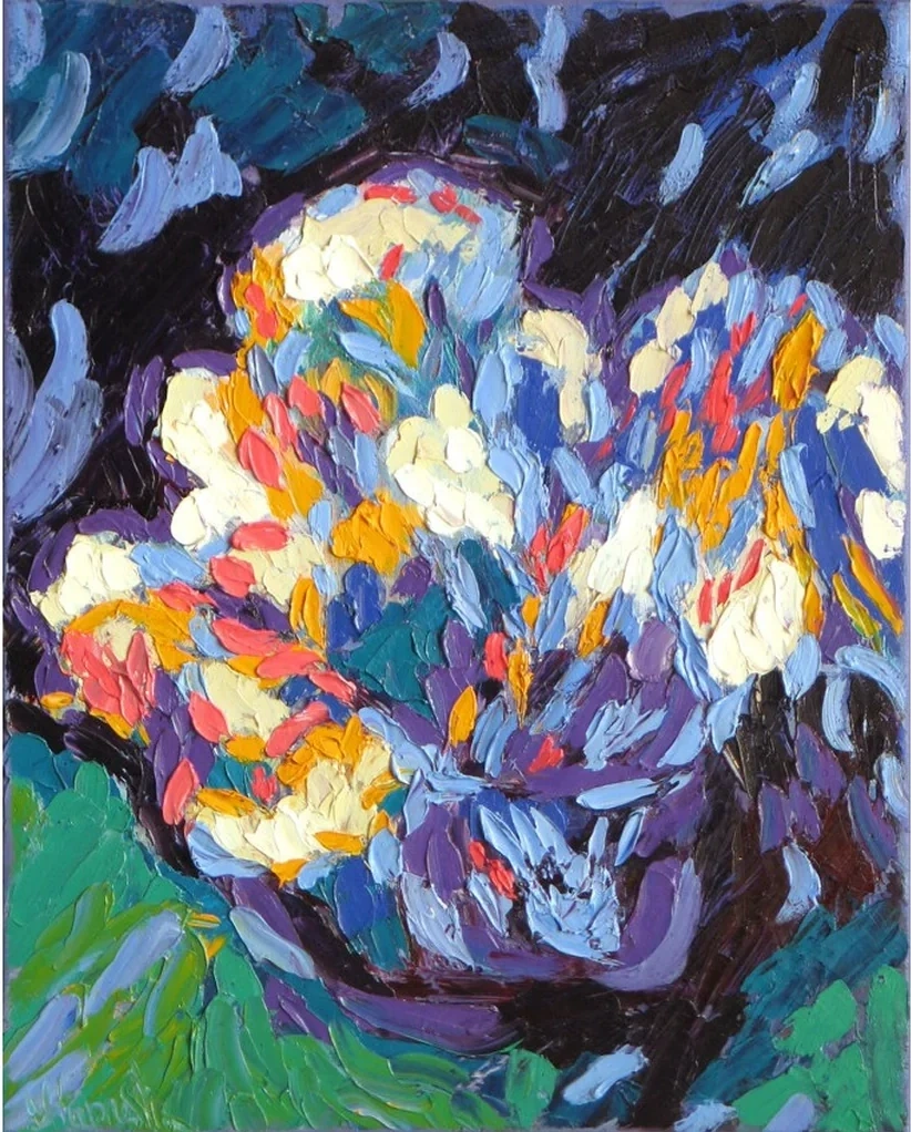 Winter Flowers by Hanna Kaprosh is a vibrant acrylic on canvas painting (50x40 cm), blending abstract floral motifs with an expressive use of color. The bold strokes and rich textures evoke a sense of energy and life, capturing the artist's mastery in creating harmony through chaos.