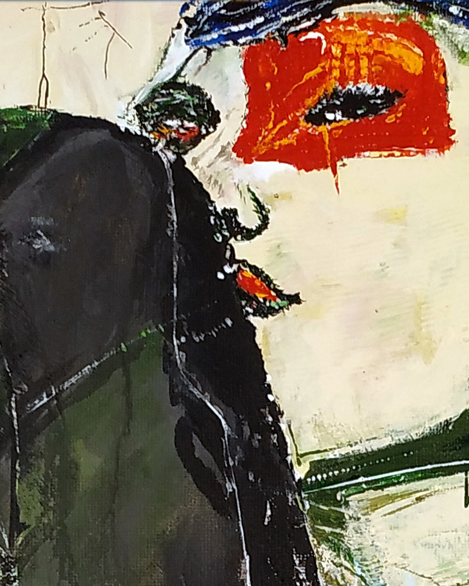 Behind the Mask captures vulnerability and self-protection in a boldly posed, expressively painted portrait.
